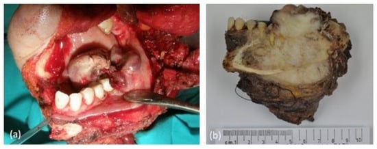 - Kimura, Y.; Tomihara, K.; Tachinami, H.; Imaue, S.; Nakamori, K.; Fujiwara, K.; Suzuki, K.; Yasuda, T.; Miwa, S.; Nakayama, E.; et al. Conventional Osteosarcoma of the Mandible Successfully Treated with Radical Surgery and Adjuvant Chemotherapy After Responding Poorly to Neoadjuvant Chemotherapy: A Case Report. J. Med. Case Rep. 2017, 11, 210. [Google Scholar] [CrossRef]