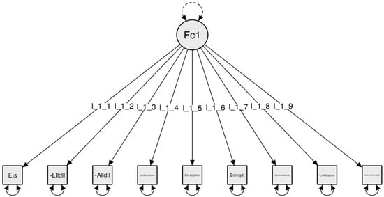 - Chi-square: It is estimated that this value should be greater than 0.05. This indicator is highly sensitive as it follows a chi-square distribution [36,37]. Therefore, it is recommended to complement the results with other goodness-of-fit indices, among which the most commonly used one is the Root-Mean-Square Error of Approximation (RMSEA) [37,38,39]. This measure helps determine the significance of the model.