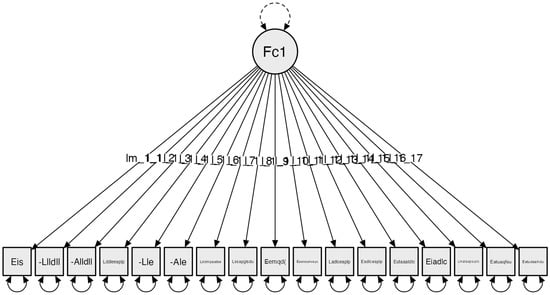 The Exploratory Factor Analysis of the third subscale, Bedroom Mobility, establishes a one-factor model. Starting with an initial configuration of 17 items, this initial analysis results in a one-factor model with 17 items exceeding 0.4 variance. With this result, Confirmatory Factor Analysis (CFA) was conducted. The obtained results for the indicators are as follows: Confirmatory Factor Analysis (CFA), adjusting the model using absolute model fit indices and incremental model fit indices: Chi-square χ²(119) = 76.395, p = 0.999; RMSEA ≤ 0.001; GFI = 0.921; NFI = 0.810; and CFI = 0.999. (Figure 3).