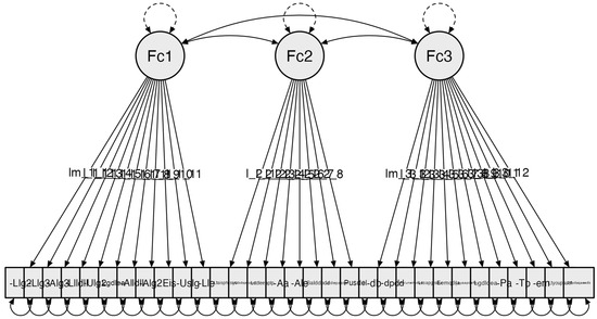 - Comparative Fit Index (CFI): This index indicates a good scale fit for values close to one, preferably above 0.95 [43,44].