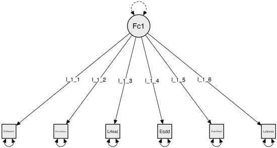 The Exploratory Factor Analysis of the fifth subscale, Specific Elements of Space-Indifferent Use, establishes a one-factor model. Starting with an initial configuration of 6 items, this initial analysis results in a one-factor model with all 6 items exceeding 0.4 variance. With this result, Confirmatory Factor Analysis (CFA) is conducted. The obtained results for the indicators are as follows: Confirmatory Factor Analysis (CFA), adjusting the model using absolute model fit indices and incremental model fit indices: Chi-square χ²(9) = 11.567, p = 0.239; RMSEA = 0.049; GFI = 0.991; NFI = 0.840; and CFI = 0.955 (Figure 5).