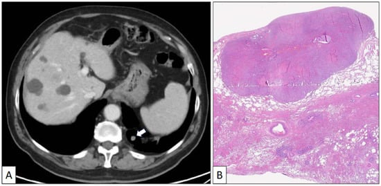 - Mlika, M.; Rais, A.; Abdelkbir, A.; Ben Saad, S.; Abdennadher, M.; Baccouche, I.; El Mezni, F. Collision lung tumor associating typical carcinoid tumor to sclerosing hemangioma. Clin. Case Rep. 2022, 10, e06237. [Google Scholar] [CrossRef] [PubMed]