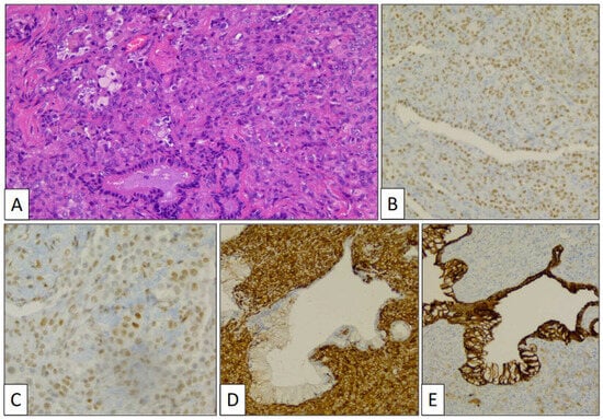 PSP is a very infrequent tumor outside Eastern countries and shows different architectural patterns with two cell types participating in it. Under these conditions, its diagnosis may be really difficult especially if the obtained material is scarce or the tumor is not optimally sampled. Several case reports of PSPs diagnosed using this tool appear in the literature [41,42,43,44]. Some of these authors report diagnostic difficulties using core biopsy specimens. For example, Morikawa et al. [41] describe a case of PSP presenting with multiple nodules in which the diagnosis of lung adenocarcinoma was considered based on its papillary architecture.