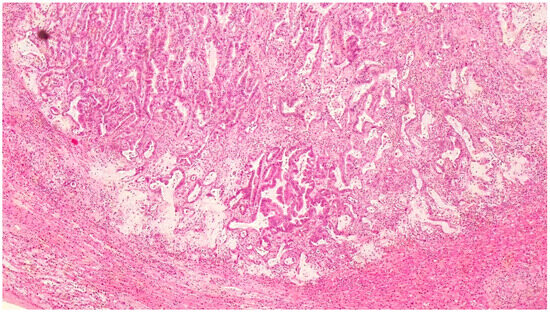 Histologically, IPNBs show intraductal papillary growth with varying degrees of dysplasia, from low-grade to invasive carcinoma. They are subclassified based on histological features, such as pancreatobiliary, intestinal, gastric, and oncocytic subtypes, and further characterized by mucin production [6].