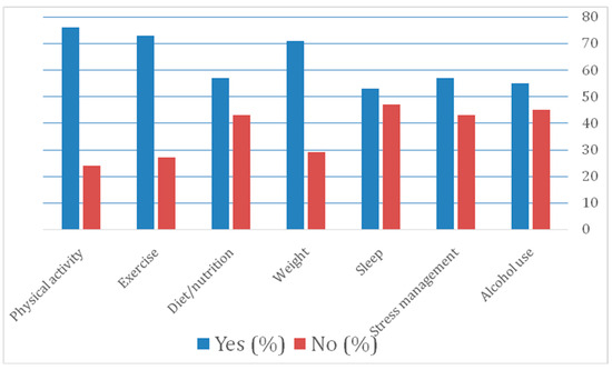 The following supporting information can be downloaded at: https://www.mdpi.com/article/10.3390/clinpract14050140/s1, Table S1: A Do you ask your patients about their confidence to change or improve their habits in the following areas? B Do you discuss challenges patients may face while trying to improve in any of the following areas? C Do you assist your patient to know the optimal recommended values for? What is most (highest) common type of problems your see on daily basis?—Selected Choice.