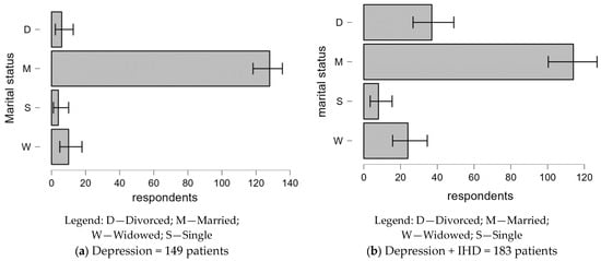 In contrast, patients with both depression and IHD have a more balanced gender distribution and a higher proportion of people living in rural areas. Such a variation may be due to the widespread impact of IHD on the specific health needs of the different demo-graphic groups and comorbid patients. The distribution of diagnostic categories also differs. Patients with comorbid depression and IHD have a higher incidence of recurrent depressive disorder and a slightly different distribution of depression levels compared to patients with depression alone. This would imply that the complexity of treating both disorders may affect the presentation and classification of depressive episodes. Various studies have shown how marital status affects depression, supporting the relevance of this factor in this study [,].