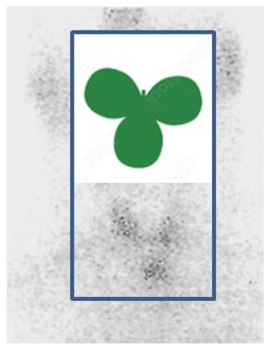 We propose the term “three-leaf-clover thyroid” to suggestively describe the presence of ETTM at the level of the upper anterior mediastinum in relationship with the two lobes (that might be enlarged as seen in this case) of the neck (eutopic) thyroid. If ETTM is suspected, thyroid scintigraphy may prove the most useful tool to capture the visual essence of this exceptional entity (Figure 12).