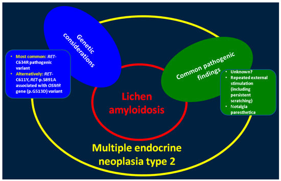 - De Sousa, S.M.; McCormack, A.I. Cutaneous lichen amyloidosis in multiple endocrine neoplasia. Intern. Med. J. 2016, 46, 116–117. [Google Scholar] [CrossRef]