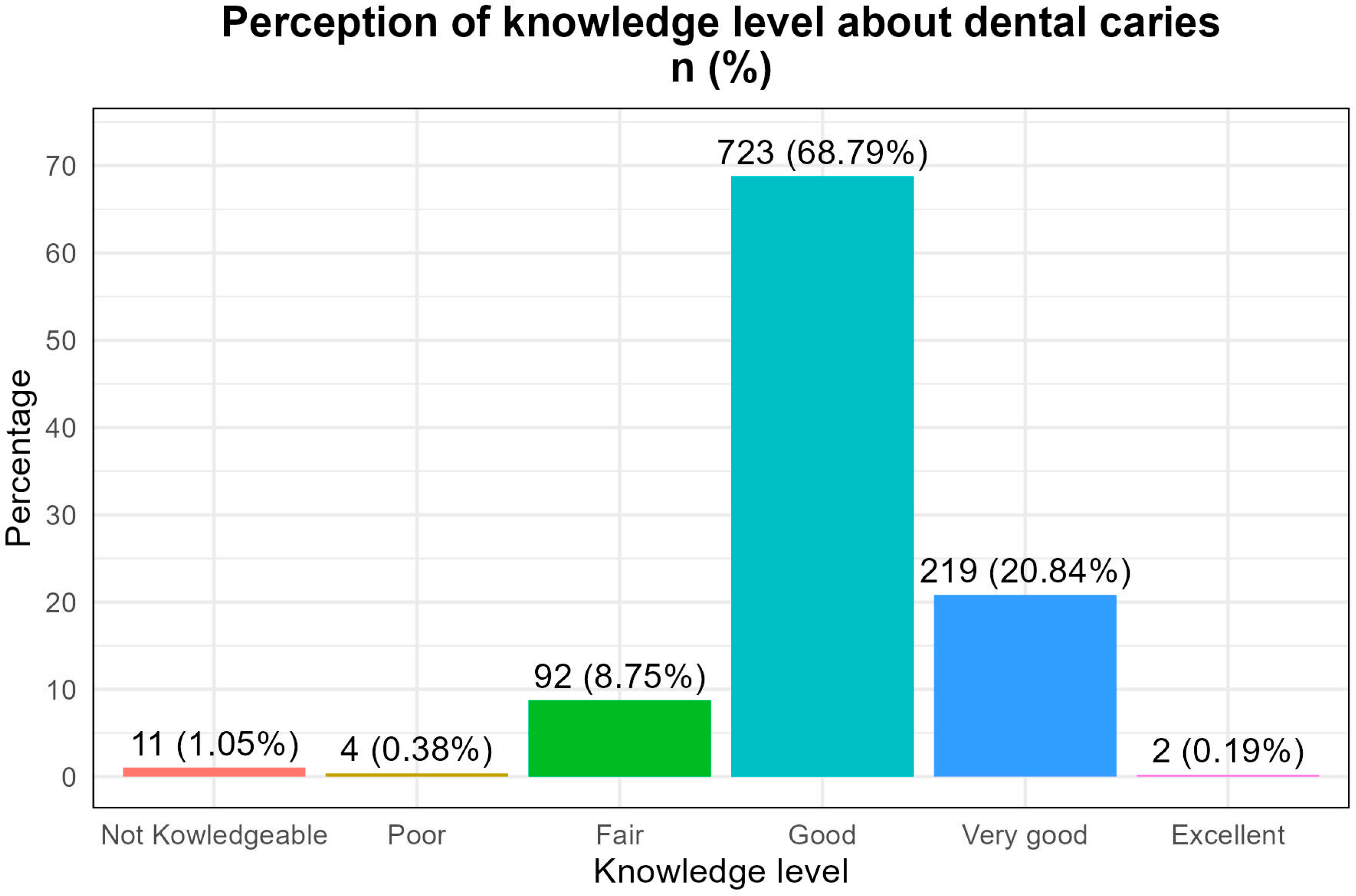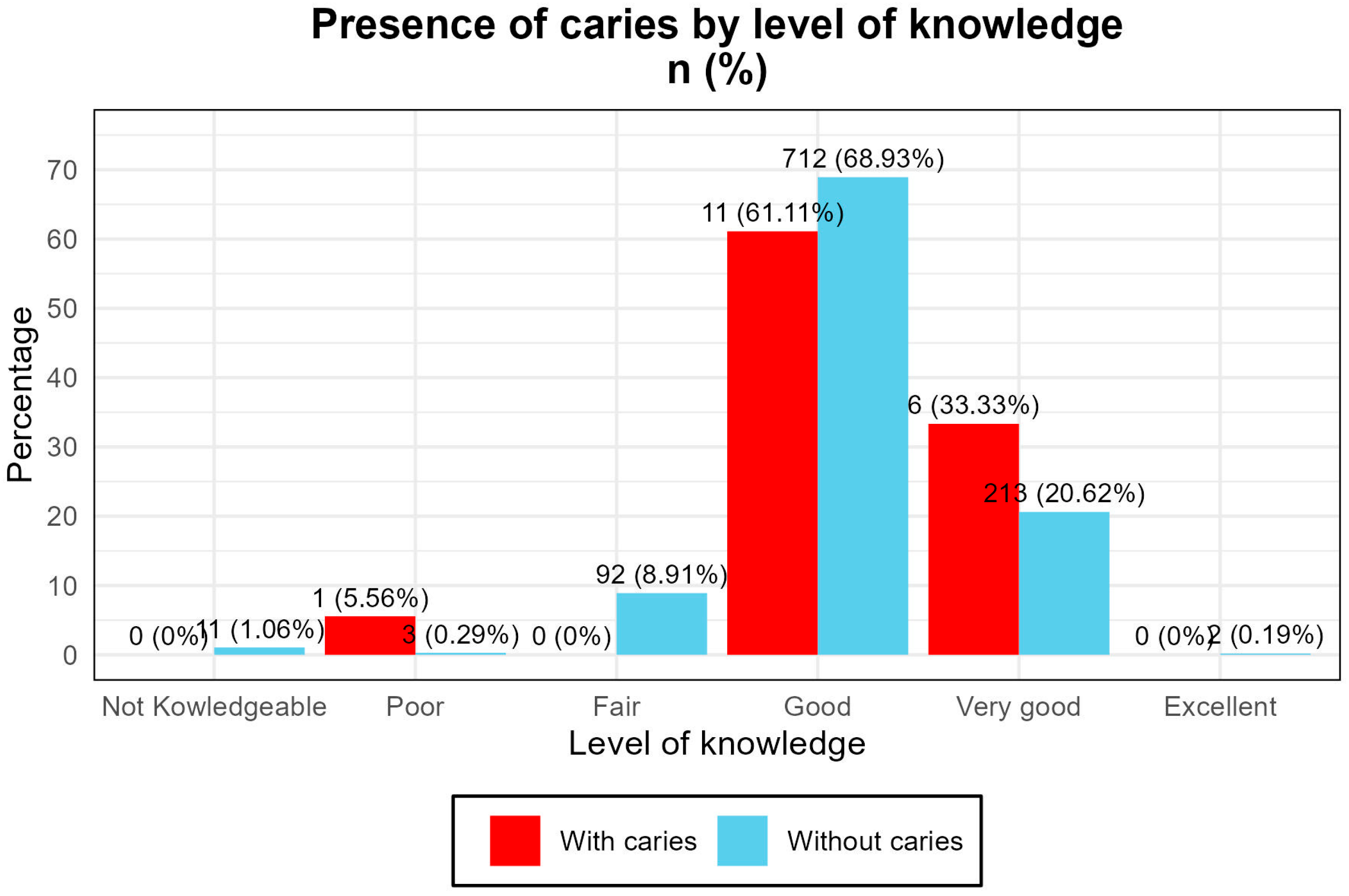 - A total of 61.1% of children with caries had parents who rated their knowledge as “good”.