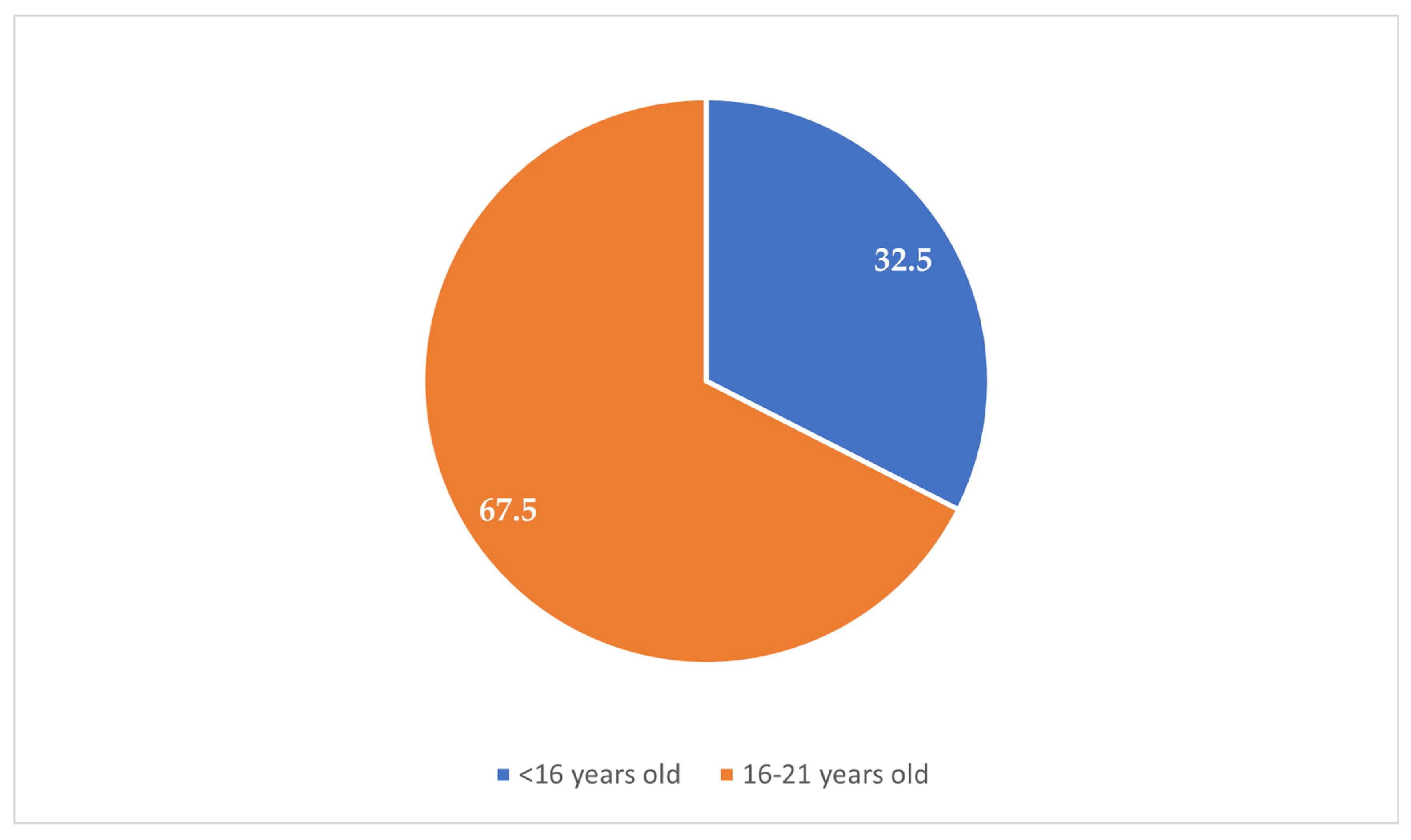 Figure 1). Most participants (67.5%) reported experiencing their first sexual intercourse between the ages of 16 and 21 years, whereas 32.5% reported that it occurred before the age of 16 years (