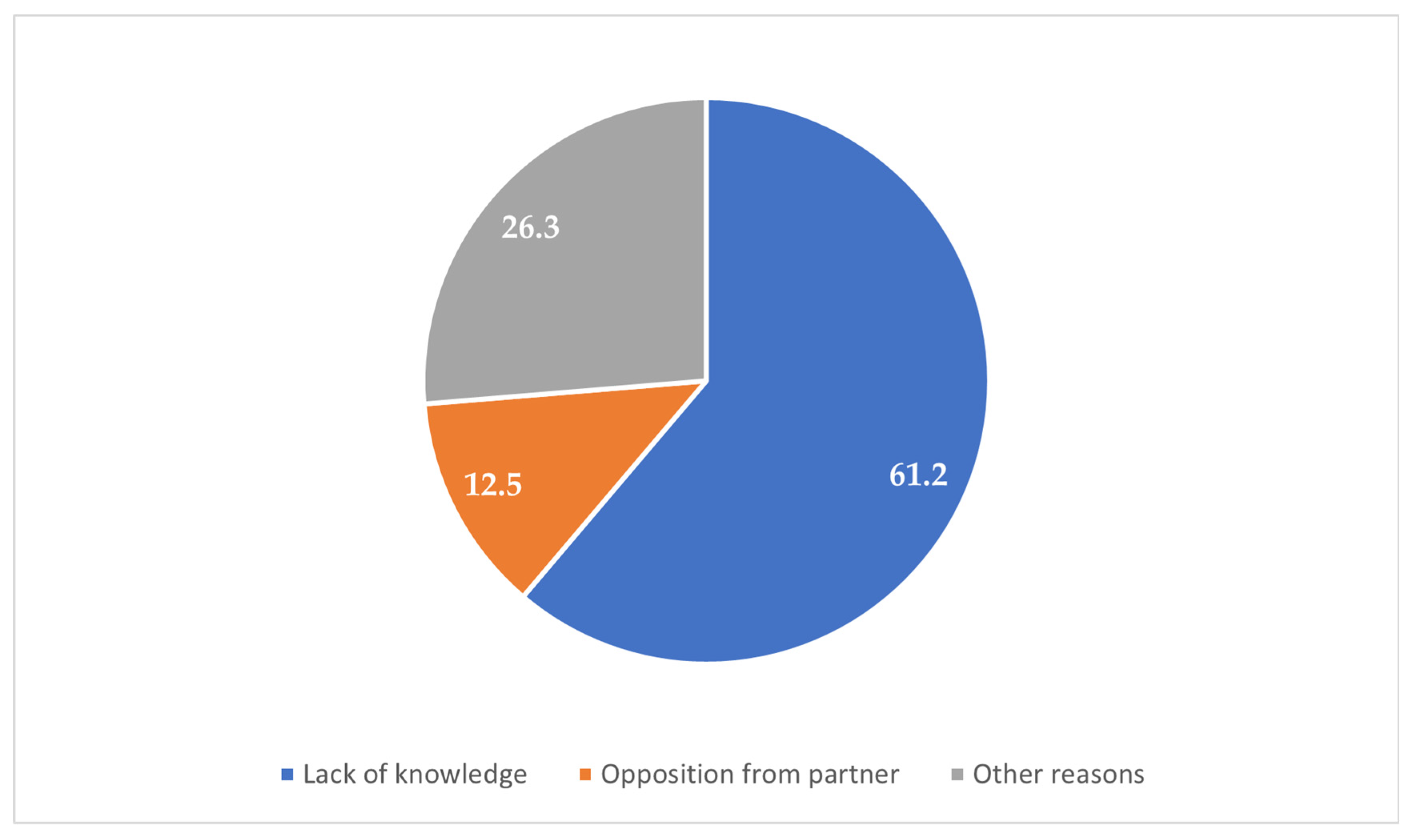 Figure 3). Among those who did not use contraception, the most frequently cited reason was a lack of knowledge (61.2%), followed by partner opposition (12.5%) and other personal or contextual reasons (26.3%) (