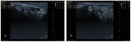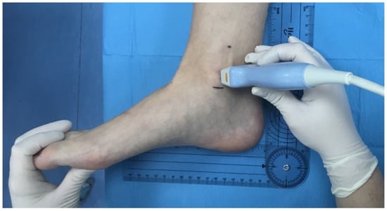 All measurements were conducted with the foot positioned at a 90° angle to the tibia to standardize the obtained results and minimize potential calculation errors [6,9,12,13,14,15]. As in the most recent anatomical studies [14,15], distance measurements were taken using a digital caliper rather than a conventional ruler to ensure maximum precision in the results. In all cases, plantar flexion of the hallux was performed to avoid confusing the ultrasound image of the flexor hallucis longus tendon with that of the tibial nerve structure [16].
