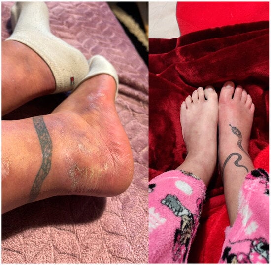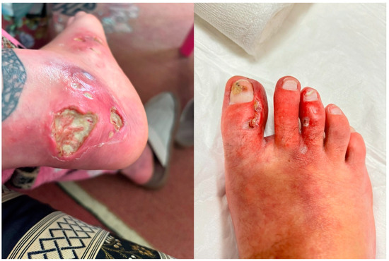- Barbe, M.; Batra, A.; Golding, S.; Hammond, O.; Higgins, J.C.; O’Connor, A.; Vlahovic, T.C. Pyoderma Gangrenosum. Clin. Podiatr. Med. Surg. 2021, 38, 577–588. [Google Scholar] [CrossRef]