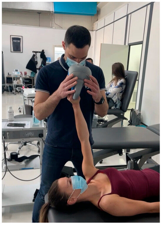 - Jang, J.-H.; Oh, J.-S. Changes in Shoulder External Rotator Muscle Activity during Shoulder External Rotation in Various Arm Positions in the Sagittal Plane. J. Phys. Ther. Sci. 2014, 26, 135–137. [Google Scholar] [CrossRef] [PubMed]