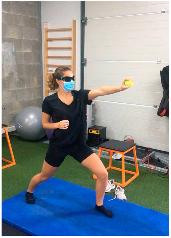 - Stroboscopic and Dual-Task Challenges: Stroboscopic glasses and dual-task training can be combined for agility and neurocognitive adaptability. For instance, patients can perform a Fitlight reaction drill, using the glasses to create intermittent vision while touching lights that appear randomly. This exercise strengthens focus, reaction speed, and adaptability, key elements for athletic performance (Figure 5).