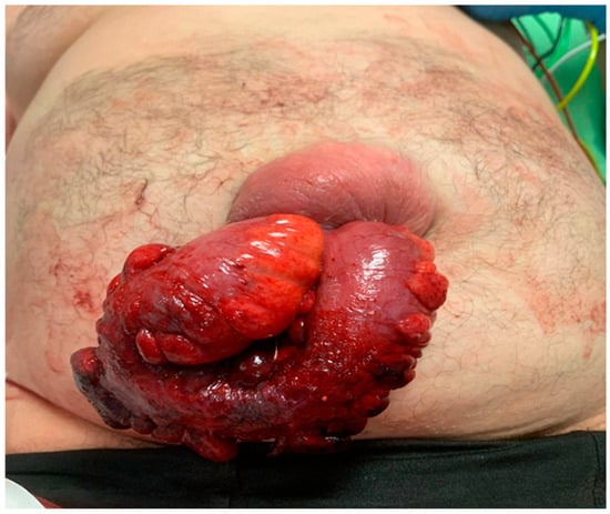 Evisceration is a rare complication in pediatric patients. Wendy L. et al. described 19 cases of spontaneous evisceration in pediatric umbilical hernia over 50 years []. This means that the risk of this complication is small, considering the frequency of this pathology. Several factors precipitate hernia rupture, such as the age of the infant or child, the defect size (larger than 1.5 cm in diameter), umbilical sepsis or ulceration of the skin, and any condition that suddenly increases the intra-abdominal pressure, i.e., vigorous crying, respiratory infection, intussusception []. Adequate treatment of congenital hernias has a favorable outcome in contrast to adult cases. In contrast to pediatric cases, umbilical hernia in adults is a very frequent wall defect []. This is related to the progressive weakening of the umbilical ring associated with an acute or chronic rise in intra-abdominal pressure. One of the most important pathological causes of abdominal pressure increase is ascites, the risk of which is 20% [,,,,,]. Obesity (BMI > 30 increases the risk 3-fold), visceromegaly, pregnancy (with multiparity as an independent risk factor), large cysts, and neoplastic lesions are the other common causes of umbilical hernias [,,,]. The risk of spontaneous hernia rupture with evisceration is infrequent. In a literature review without time selection limits, the first case described was in 1951. We found only 10 published cases in the last 24 years of adult patients with wall defects as the site of evisceration, in addition to the unpublished case that occurred recently at our hospital. Of these, five were women and six were men. In those cases, the umbilicus becomes a site affected by evisceration because the continuity of the linea alba is interrupted, and, for this reason, it represents an area of weakness. The umbilicus, by its nature, represents a point of weakness in the anterior abdominal wall, as a derivative of the stump of the umbilical cord. Being located medially between the two rectus muscles, it causes the anatomical and mechanical interruption of their muscular aponeurosis, thus creating an area of lower resistance to abdominal pressure. Tensile forces, therefore, act on this site, which, in addition to protein deficiency, sarcopenia, obesity, pregnancy, and chronic disease (e.g., diabetes, collagen disorders, etc.) that decrease the resistance of the muscles and the abdominal wall, cause abnormal decussations of the aponeurotic fibers with the consequent onset of hernial defects. The age of the patients ranged from 23 to 81 years old. Five cases reported a growth of the hernia in the last period [,,,,]; in the other cases, there was a sudden onset. In six cases, evisceration was preliminarily associated with leakage of ascitic fluid [,,,,]. In 8 out of 11 cases, the event occurred in patients with chronic liver failure, with cirrhosis on an alcoholic basis, in 4 out of 8 [,,,]; hepatitis, in 3 out of 8 [,,]; or combined alcoholic and hepatitis, in 1 out of 8 []. These cases were always associated with an important ascitic component. From the cases described, it seems well established that the greatest risk factor in spontaneous evisceration related to a viral or alcoholic hepatopathy [,,,] is degeneration into cirrhosis, associated with eight out of the eight cases with ascites. The ascites led to a chronic elevation in intra-abdominal pressure. Body position and patient activity cause a further increase in the intra-abdominal pressure, which can overwhelm the strength of the anterior abdominal wall layers. Skin ulceration and the rapid increase in the size of the hernia are signals of impending rupture. Chronic cutaneous ulcerations and their resulting inflammatory response, in addition to the picture of ascites, can cause a reduction in the tone and thickness of the anterior abdominal wall. This can lead to liquid spillage from the hernia defect, a sign of possible impending rupture []. In addition to these conditions, acute and subacute changes in intra-abdominal pressure, such as vomiting and coughing, led to hernia rupture. Even in our case, the patient complained about a rupture of the abdominal wall defect after a sudden cough, but in contrast with the literature, the patient had no previous medical history of hepatitis infection, even without cirrhosis and ascites []. Likely, a chronic increase in intra-abdominal pressure caused by obesity and the sudden cough led to the umbilical hernia rupture. In this review, the herniated viscera were the ileum in six cases [,,,,] and in the omentum in five cases [,,,]. Resection was necessary in two cases in the literature [,], as in our patient, because of the ischemic findings of the herniated viscera. Evisceration is a life-threatening emergency because of the risk of perforation, ischemic complications of the visceral herniation, or septic complications. In an emergency setting, direct suture repair was preferred. Abdulqader M. et al. [] declared that urgent umbilical herniorrhaphy without mesh or primary closure is the preferred intervention in cirrhotic patients presenting with an umbilical hernia rupture since it has been shown to reduce the mortality to 6–20% []. In 10 cases, direct repair of the hernia was required to address the high risk of infection. A lot of studies underline that the placement of a prosthesis reduces the rate of hernia recurrence [,]; however, in these emergency settings, only one case of mesh repair was found []. In that case, the patient was young, clinically stable without signs of infection, and without the necessity of bowel resection. The authors placed polypropylene mesh over the posterior rectus sheath and below the rectus. The sublay technique can be used as an elective in an emergency, with a good outcome. Despite this, there remains a reluctance to place a prosthetic mesh in a certainly contaminated setting of evisceration. This attitude can be attributed to the fear of the occurrence of in