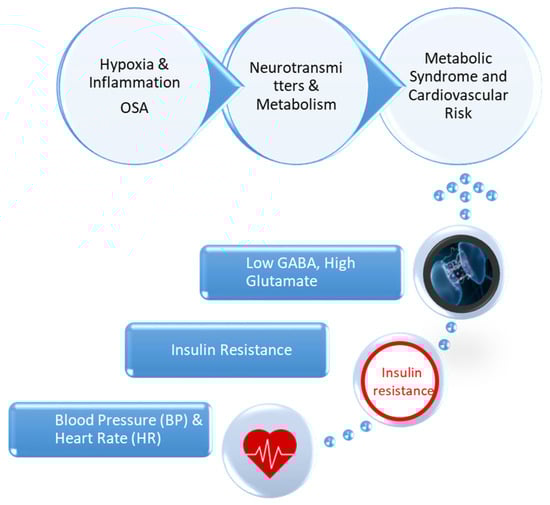 Neurotransmitter Imbalance: Gamma-aminobutyric acid (GABA) and glutamate, crucial regulators of metabolic and neurophysiological function, are disrupted in OSA and MS [9]. A decline in GABA levels reduces its inhibitory effects on inflammation and metabolic stress, whereas elevated glutamate levels promote excitotoxicity and metabolic dysregulation [10].