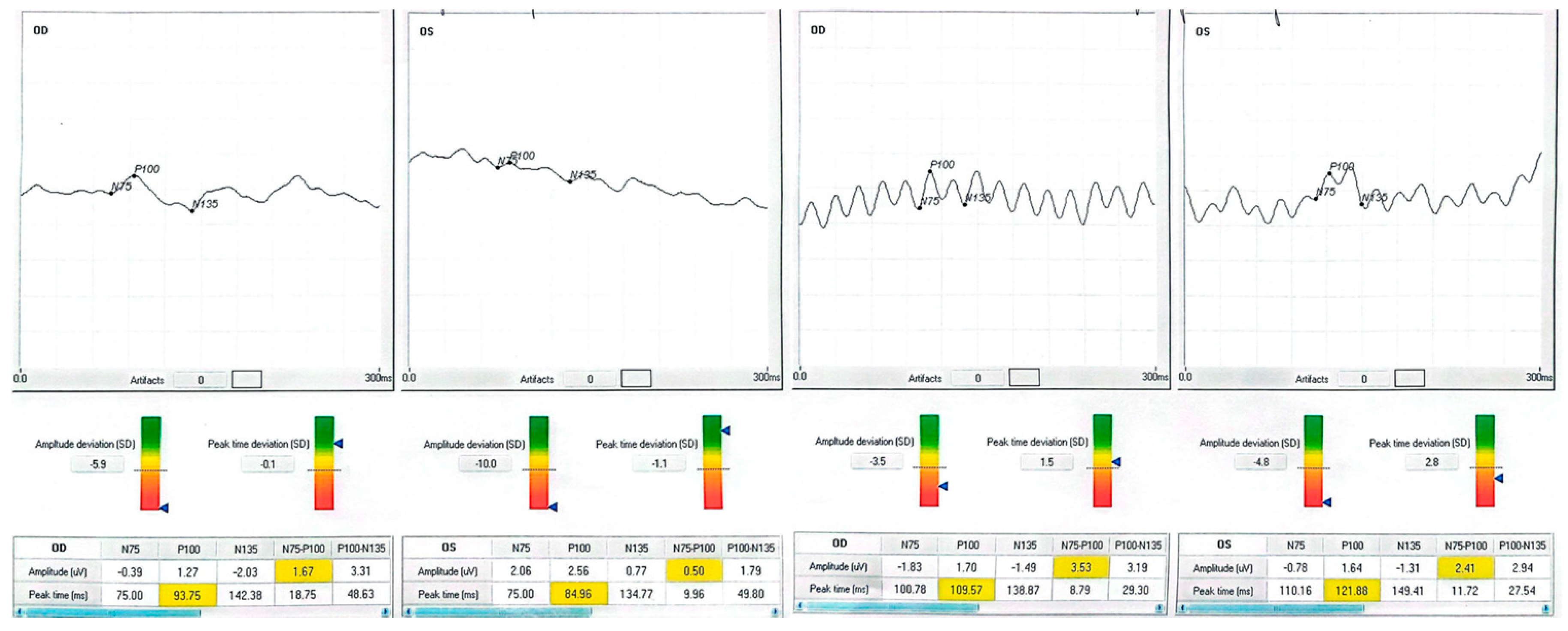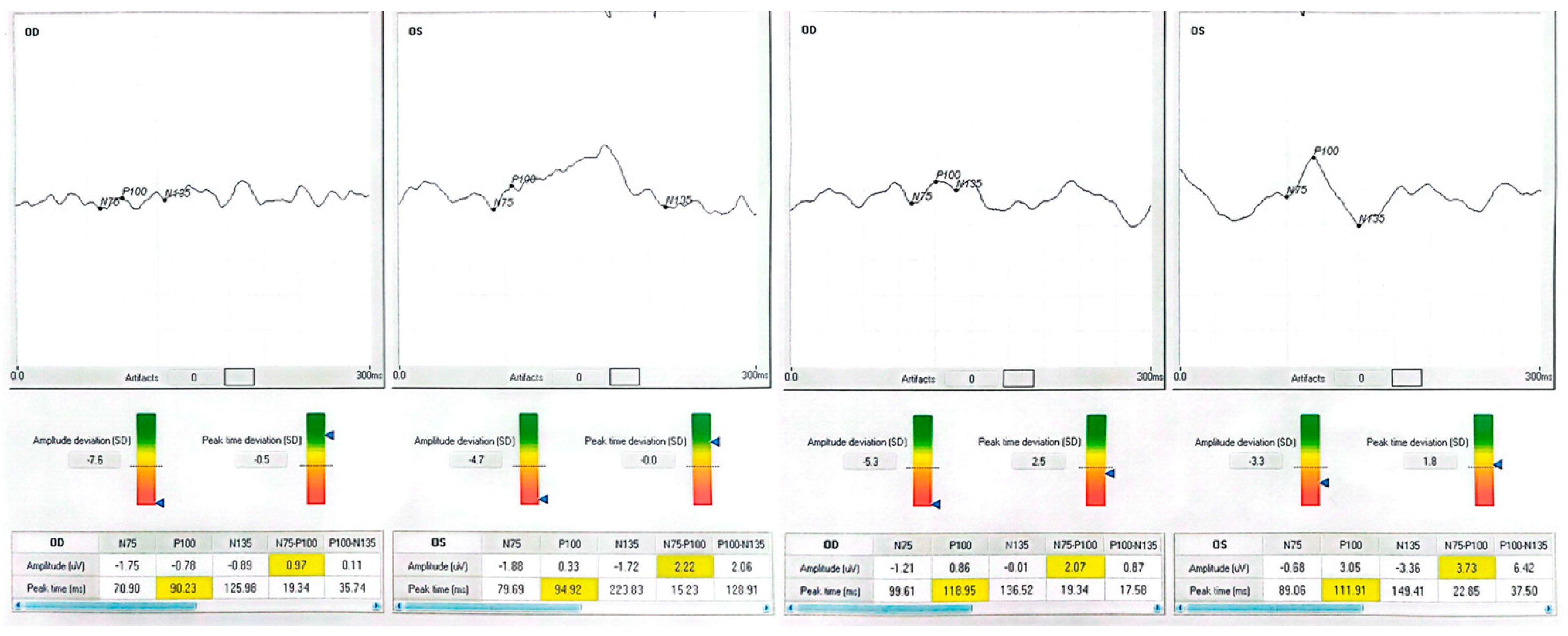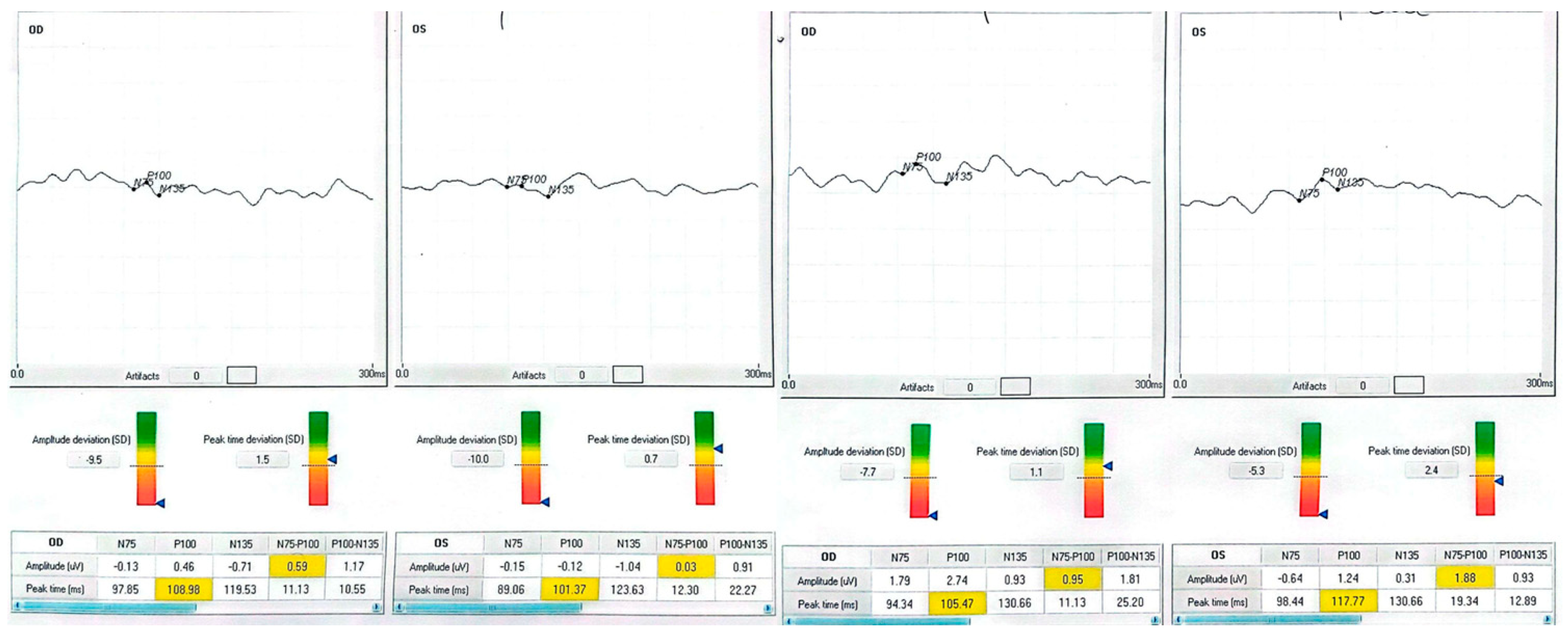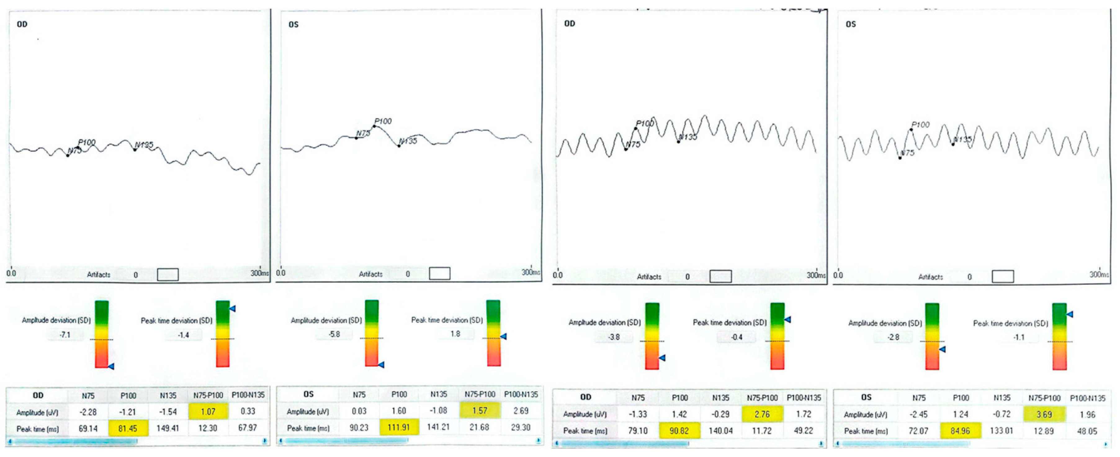 8. Verdina, T.; Piaggi, S.; Ferraro, V.; Russolillo, V.; Peschiera, R.; Chester, J.; Mastropasqua, R.; Cavallini, G.M. Biofeedback rehabilitation based on VEP analysis in advanced age-related macular degeneration. Sci. Rep. 2020, 10, 20886. [Google Scholar] [CrossRef]