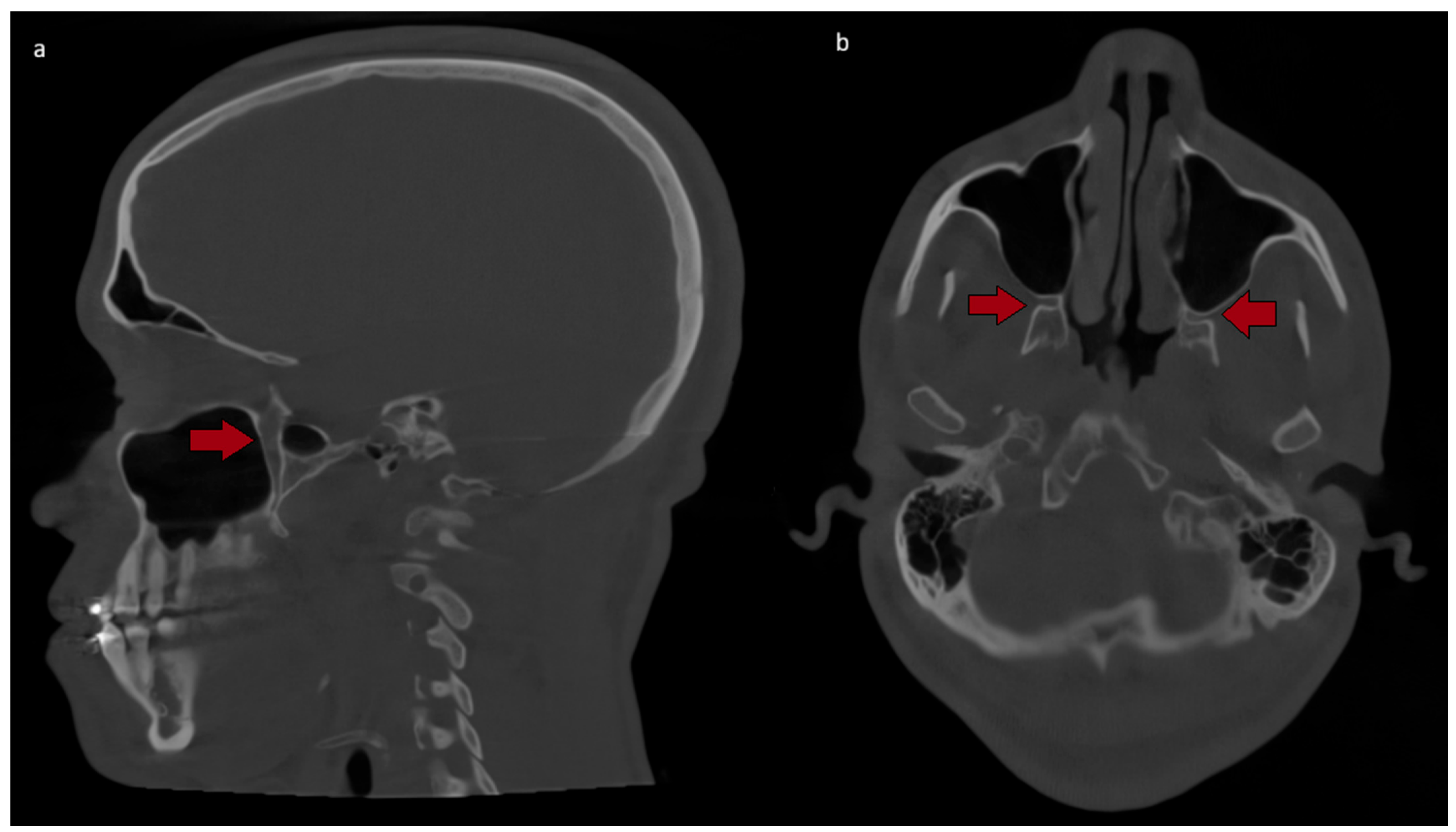 - Alshalawi, H.; Fatani, B.; Alotaibi, M.; Assiri, Z.A. Trigeminal Cardiac Reflux During Le Fort I Osteotomy: A Case Report. Cureus 2024, 16, e61665. [Google Scholar] [CrossRef] [PubMed]