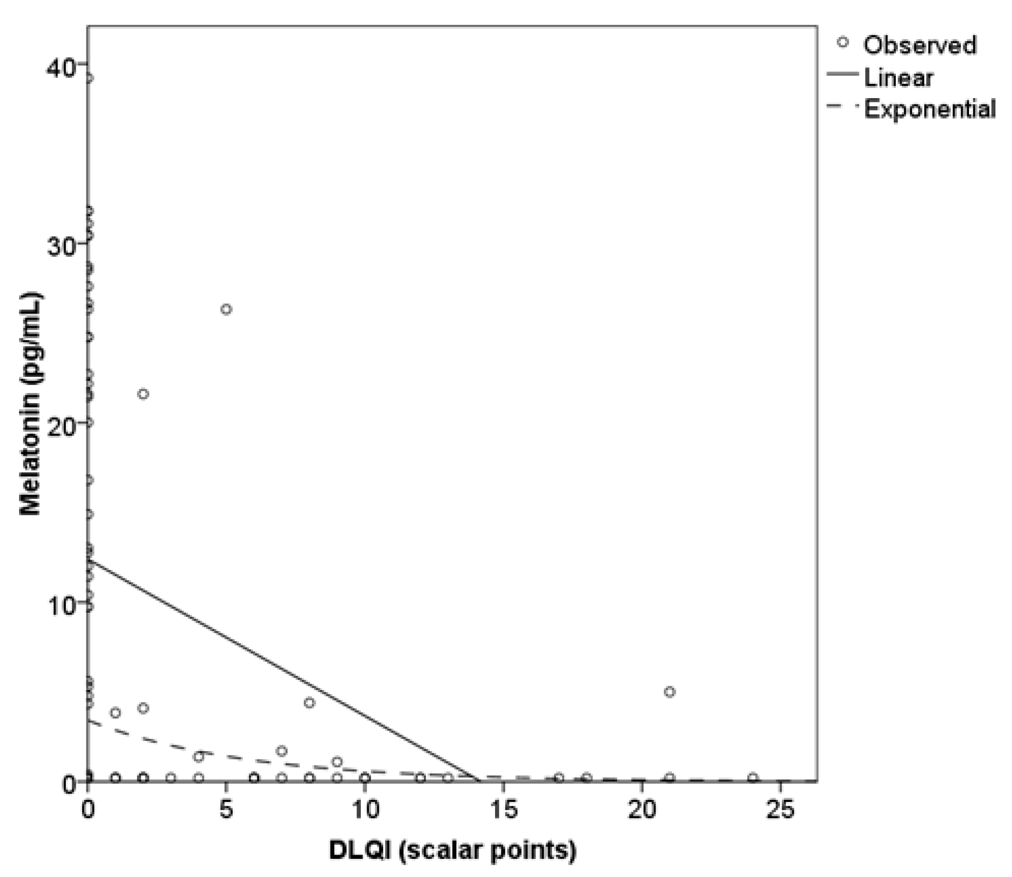 | Variable | Melatonin | Age | DLQI | PSQI | |