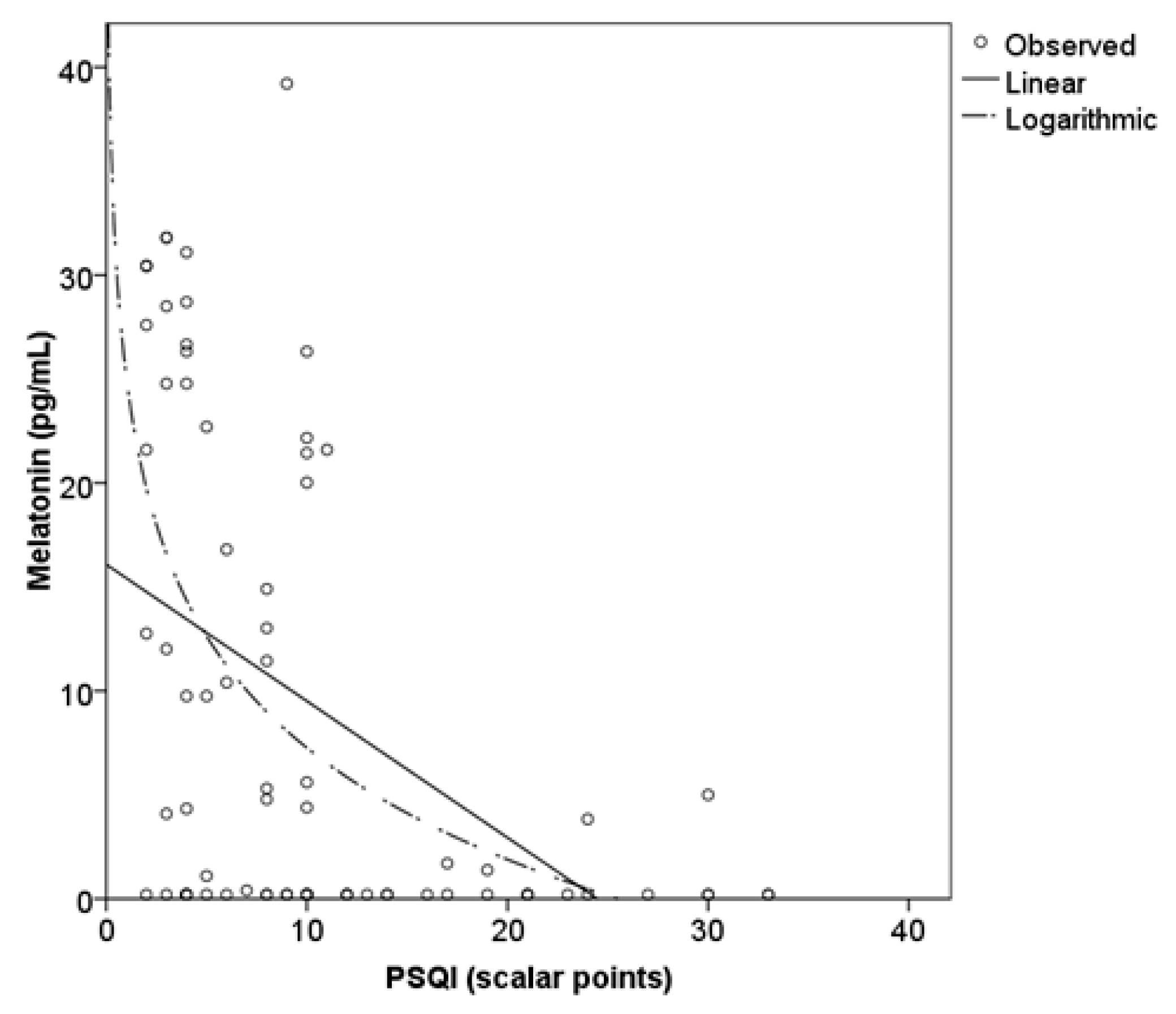 3.3. Association of Salivary Melatonin Concentration with Sleep Quality and Quality of Life