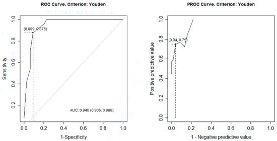 - Area under the ROC curve (AUC): 0.946 (95% CI: 0.906–0.986)