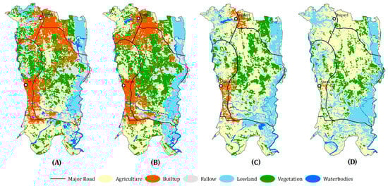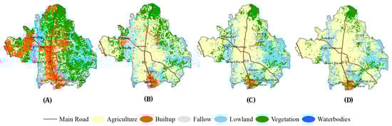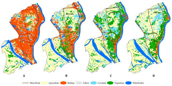 Land cover map of Gazipur. (A) 2015; (B) 2000; (C) 1990 and (D) 1980.