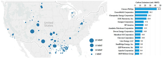 We collect the data used in this study from three sources. The Carbon Emissions data are extracted from GHGRP. Officially launched in 2010, GHGRP mandates that facilities emitting more than 25,000 metric tons of CO2e per year should report emission quantities to EPA. As the most comprehensive emission reporting program in the US, GHGRP accounts for 85–90% of the country’s total emissions. A wide range of facilities are covered and each facilities is given a “subpart” label to identify its industry type. We extract all subpart “W” facilities which consist of sources from the oil and natural gas production/processing and natural gas transmission/storage/distribution segments (Subpart W basic information: https://www.epa.gov/ghgreporting/subpart-w-basic-information, accessed on 20 September 2017). Note that both onshore production and offshore production are covered in subpart “W”. Since a company may operate multiple facilities, we aggregate the facilities to form firm-level emission data. The time frame of the data is from 2011 to 2015. Using a longer time horizon would yield better temporal assessment. But 2011 is the earliest year when emission data are available via GHGRP. The length of the horizon is also comparable to earlier studies [28,29].
