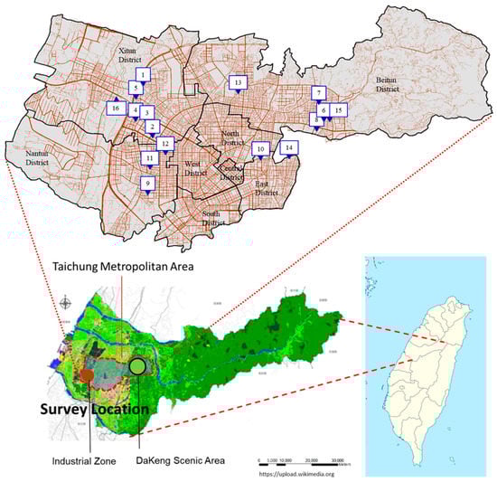 The Taichung metropolitan area is a metropolitan form of commercial service and commercial mixing, the west is an industrial zone and the east is the Dakeng Scenic area (Figure 1).