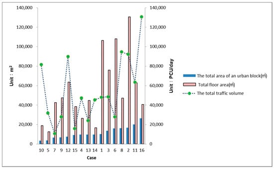 Statistical for the relation between traffic volume and building design scale in urban block.