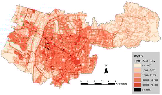 3.3. Result of the Distribution Map of One-Day Vehicle Volume in Urban Areas