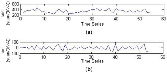 - Liu, W.; Shi, H.; Lu, Y.; Hua, F.; Qiu, J. Study on Grid Engineering Cost Index Forecasting Based on ARIMA-ES Hybrid Model. Manag. Rev. 2016, 28, 45–53. [Google Scholar]