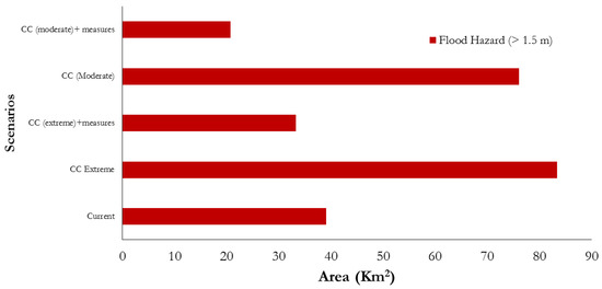 Comparison of inundation (flood hazard) under climate change (moderate and extreme) and combination of countermeasures in the Marikina–Pasig–San Juan River basin, Manila.