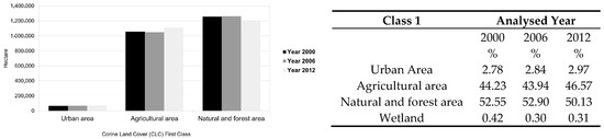 | Cagliari | Permanently irrigated land | Irrigated sowable | 5 | +21.42% | Cagliari | Permanently irrigated land | Reed | 11 | +16.00% |