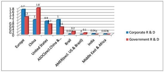 Corporate and government R&D renewable energy investment by region, 2015 $BN. Source: Bloomberg, Bloomberg New Energy Finance, IEA, IMF, various government agencies.