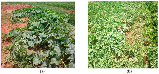 (a) Vigna unguiculate; and (b) Cleome gynandra growing under commercial production in the trial at Roodeplaat in 2012 summer season.