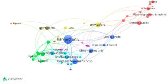 The institute co-authorship network is shown in Figure 9. The Harvard University from the USA, the University of California Los Angeles from the USA, and the Northwestern University from the USA are the top three influential institutes of the MBD-related publications. In China, the top universities include the Peking University, the Huazhong University of Sciences and Technology and the Zhejiang University.