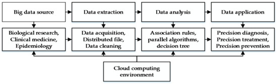 Big data has attracted researchers in all fields, especially in the field of medicine [8]. In 2009, the Google Corporation analyzed billions of distinctive digital models with billions of search messages and developed the Google Flu Trends. When the outbreak of influenza A (H1N1) virus occurred in the United States, the source of influenza was identified in time. Chawla and Davis [9] presented a big-data-driven approach towards the personalized healthcare. The American Heart Association, through the investigation of cardiovascular data, proposed a future digital ecosystem for cardiovascular disease and stroke [10].