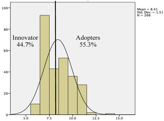 Innovation is considered a fundamental basis for development and competitiveness, so that ideas, methods, innovative structures, as well as new products or services are seen as important drivers of organizational and economic growth [,,]. In this context, innovation is a technological and social change []. In order to innovate it is necessary to have a broad knowledge of the needs of consumers and from this perspective, some studies have related the adoption of new products with socioeconomic characteristics []. Younger consumers are more innovative than older ones [,,,]; The greater the socioeconomic status of the consumer, as well as the level of education, the greater the possibility of being more innovative.