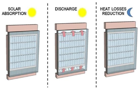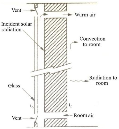 - Saadatian, O.; Sopian, K.; Lim, C.H.; Asim, N.; Sulaiman, M.Y. Trombe walls: A review of opportunities and challenges in research and development. Renew. Sustain. Energy Rev. 2012, 16, 6340–6351. [Google Scholar] [CrossRef]