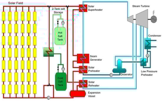 - Herrmann, U.; Kelly, B.; Price, H. Two-tank molten salt storage for parabolic trough solar power plants. Energy 2004, 29, 883–893. [Google Scholar] [CrossRef]