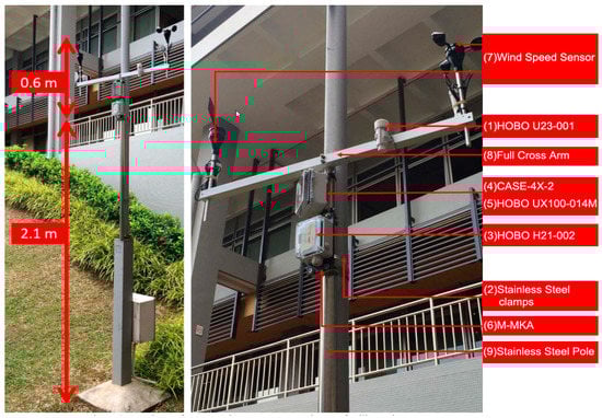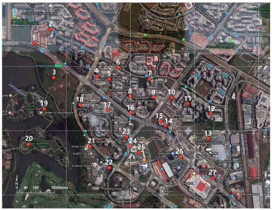 - Continuous field measurement at 27 points in the studied area to collect the microclimatic weather conditions at 2.5-m height for one year to investigate the spatial and temporal microclimate parameters related to the distribution of open space at the local scale in Singapore, and explain changes in microclimate within this specific morphology.