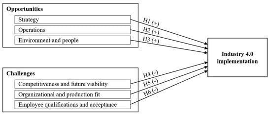Figure 1 exhibits the hypothesized relationships of Industry 4.0-related opportunities and challenges with the implementation of Industry 4.0.