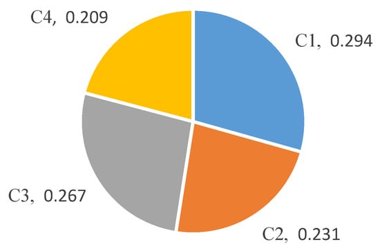In order to determine the index weights, Analytic Hierarchy Process (AHP) is adopted and the expert group scoring is used to overcome the unreasonable effect of the subjective factors arising from the personal experience and knowledge of evaluators []. In this research, we invited 15 experts on the water management from Cold and Arid Regions Environmental and Engineering Research Institute, Chinese Academy of Sciences, to score the indicators. The weight values of performance indicators are shown in Figure 2 and Figure 3.