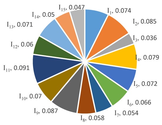 In accordance with the three objectives of IWRM, the performance index system of the SWRM should include three dimensions, namely, ecological sustainability, water use equity and water use efficiency. Considering the fact that the realization of the three major objectives of SWRM is based on the sustainability of water management system and the improvement of its operational efficiency, organizational efficiency is taken herein as a key endogenous target of SWRM in irrigation areas. Concerning the characteristics of irrigation areas, the performance index system of SWRM is established, consisting of four indicator dimensions denoted as I1–I15 (Table 1) in this research. Among these indicators, I2 and I6 are the negative indicators while the others are the positive ones.