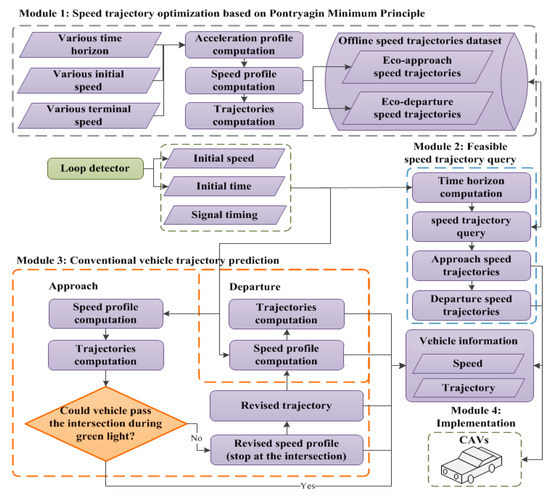 - Module 4: Implementation. The CAVs receive eco-approach and eco-departure speed trajectories from module 2 and adjust its speed accordingly.