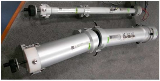 Two impedance tubes characterized by different diameters were utilized (Figure 3). The big one had an internal diameter of 100 mm, which corresponds to the low frequency range (100–1200 Hz), while the small one had an internal diameter of 28 mm, which corresponds to the high frequency range (1000–5000 Hz). Each tube had a length of 560 mm and mounted two microphones.