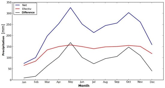 - Blue evapotranspiration (ETblue) was estimated using Equation (5):ETblue = max {0, ETc − Pef}