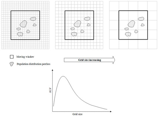To establish the proposed method, we selected different window sizes and ensured they covered the same actual ground areas of different population distribution datasets. The ALV values calculated by the proposed method in this manner were more comparable and objective than those calculated by the traditional method. The results based on Anhui Province indicated that 200 m grid size most accurately expresses the study area’s population density discrepancies. In other words, the smallest grid size is not always most effective.