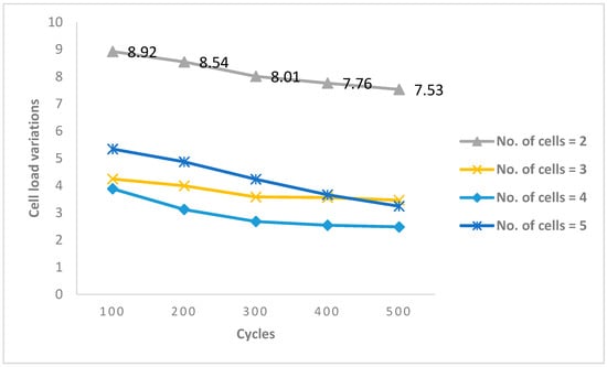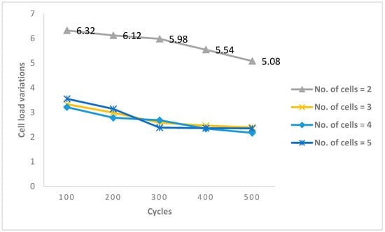 Figure 4 shows the MABC convergence curve for cell load variation of problem size 10 × 12. The above figure indicates that in cell 4, cell load variation is minimized from the cycle of 100 to 300, and there is no significant improvement from the cycle of 300 to 500. For cell number 2, 3, and 5, the curve is linear from the cycle of 100 to 300.